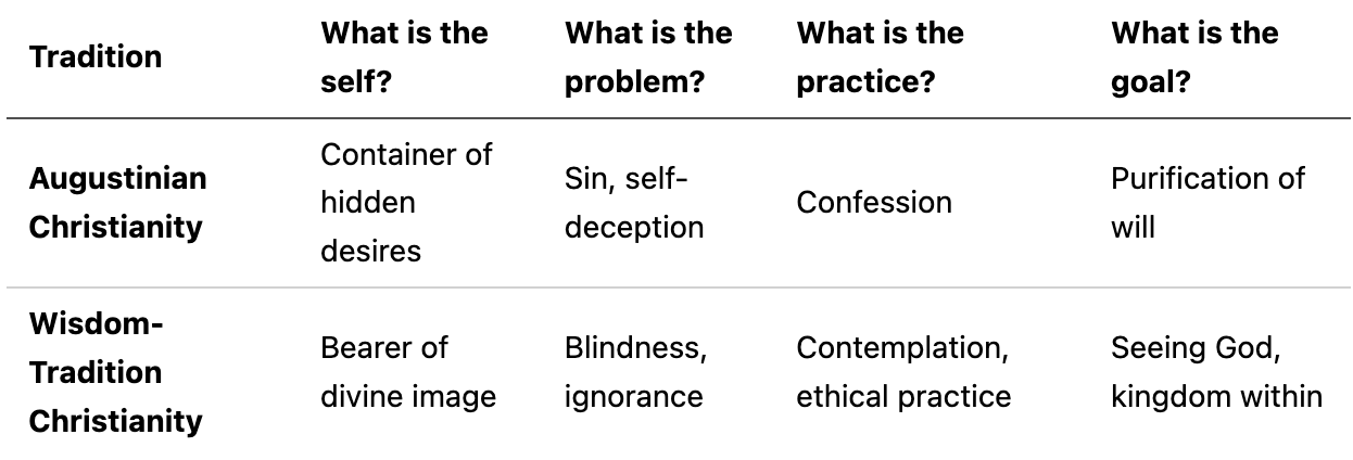 The institutional church that Paul helped build and Augustine theologized is one Christianity. But there is another Christianity—a wisdom tradition, a way of transformation—that never entirely disappeared and that offers a different psychology of self-knowledge.